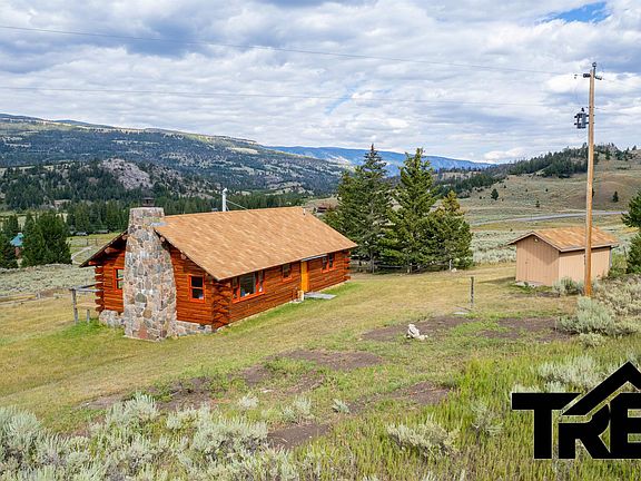 Step inside to an open-concept main room that beautifully blends the kitchen, dining area, and living space. Natural light cascades through the windows, illuminating the warmth of native logs. The reclaimed maple hardwood flooring, retrieved from the old Powell High School, adds a touch of history and coziness to the living area. The kitchen is functional and equipped for all your culinary needs, featuring modern conveniences complemented by rustic charm. With ample space for shared meals in the cozy dining area, this cabin is perfect for gatherings or quiet evenings with friends. Chilly mountain nights will be a thing of the past with baseboard electric heat, a welcoming stone fireplace, and a traditional woodstove providing a cozy atmosphere. The stonework, crafted from stones gathered along the nearby highway, brings a unique character and connection to the landscape. From the front deck, enjoy outstanding views that will leave you in awe of your natural surroundings. A property like this is rare, come and make this outstanding Wyoming wilderness cabin your new favorite place.