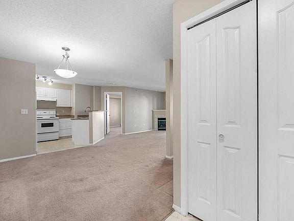 Are you looking for a TOP-FLOOR condo with 2 BEDROOMS, 2 FULL BATHROOMS, IN-UNIT LAUNDRY and UNDERGROUND PARKING? Are you ready to purchase your FIRST HOME, or looking for a great 'LOCK-AND-LEAVE' property that will allow you to travel more? How about a condo that is close to Stoney and Deerfoot for a quick commute to work, or quick to the airport for your vacation time? Come see 1410 - 17 Country Village Bay. This PENTHOUSE unit is quieter than many condos because there is no one above you but the birds in the sky. With HEATED UNDERGROUND PARKING, your car will thank you, and you will NEVER HAVE TO SCRAPE ICE off your car in the morning. Any mobility concerns? Step out of your car and you will quickly be in the ELEVATOR to the fourth floor, and into your SINGLE-LEVEL condo without navigating one single stair! How about someone else cutting the grass for you and pushing the snow off the sidewalks? The CONDO FEES are LOADED WITH VALUE - INCLUDING ALL UTILITIES - GAS (For Fireplace and BBQ), HEAT, ELECTRICITY, WATER, SEWER, TRASH, HOA Fee for the POND AREA, plus STRUCTURAL INSURANCE! So many amenities within a very short distance. Close to Sobeys, Superstore, and much more! How would you like to start your day? Should you walk to Tim Horton's for a coffee, take the dog for a lap around the pond, or visit Vivo Recreation Centre for a morning workout? You could simply stay inside and enjoy the tranquility of your new home. This condo has a GREAT FLOORPLAN, with the bedrooms on opposite sides of the unit, each with its own bathroom. The kitchen, eating area, and living room are VERY OPEN. There's plenty of NATURAL LIGHT from the large sliding doors leading to your COVERED DECK (with gas line for your BBQ, vinyl flooring and aluminum railing). The deck looks out onto MATURE TREES and OPEN GREEN SPACE between the buildings! The kitchen has CRISP WHITE CABINETS and a PENINSULA with a RAISED EATING BAR! The living room has a corner gas fireplace to keep you cozy all year round! The PRIMARY BEDROOM has a WALKTHROUGH CLOSET area, plus a FULL ENSUITE BATHROOM! The IN-UNIT LAUNDRY doubles as a spacious storage room. When you have family visiting overnight, they will love having the GUEST ROOM and SECOND FULL BATHROOM to themselves. Don't miss this opportunity... BOOK YOUR SHOWING TODAY :)