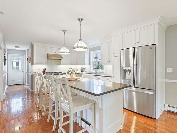 Don’t miss this stunning center entrance Colonial nestled in the heart of South Natick Village and all this location offers with close proximity to the Bacon Free Library, restaurants, coffee shop, waterfall, aqueduct trails & Elm Bank. This home features a gorgeous center island kitchen with white beaded inset cabinets, quartz counters, farmhouse sink, stainless appliances and gas cooking. Other features include a versatile layout with multiple rooms for home office, hardwood floors, central air, closet systems, wifi-enabled thermostats, primary suite with walk-in closet, finished basement, covered mahogany deck, Reeds Ferry shed and level lot. Amazing neighborhood only 2 miles from Natick center and Wellesley Square Commuter Rail.