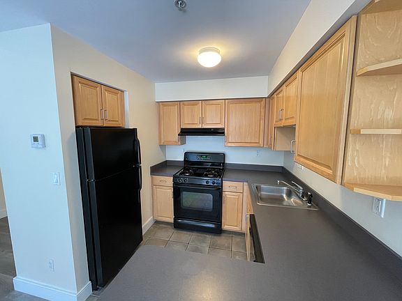 - Kitchen includes refrigerator, gas stove, and dishwasher