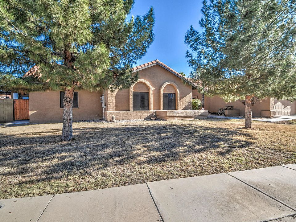 Wow! Welcome to this 4 bedroom, 3 bathroom, 3,089 sq. ft. ''home sweet home!'' Fantastic curb appeal as you pull up to the property. Separate living, dining, and family rooms w/ vaulted ceilings. Amazing kitchen w/ tile back splash, granite counter tops, island w/ breakfast bar, wood flooring, & stainless steel appliances. Master bath suite offers walk- in closet & vanity w/ double sinks. Separate quarters for the mother-in-law or to rent out w/ kitchenette, accessible shower & a private entrance. New A/C unit & hot water heaters! Beautiful newly painted diving pool w/ slide & in-ground spa. Located in the heart of Gilbert, you will be close to everything! This gem isn't going to last long. Come take a look. We know you won't be disappointed! APS bill averages $100/month w/ solar.
