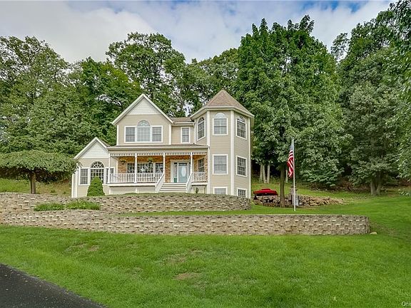 PRIVACY & SERENITY. Relax on your porch and gaze into the mountains! One owner, immaculate condition sitting on 1.02 acres! Beautiful home features soaring ceilings and tons of natural light! Cathedral ceiling in family room. Spacious eat in kitchen boasts granite counters, stainless steel appliances, dinette area with sliders leading to stunning deck-stone patio with outdoor fireplace and waterproof TV overlooking a beautiful yard. Family room with custom stone fireplace. Pella windows, oak floors. Upstairs you will find a majestic master suite with sitting area and cathedral ceiling, rainbow windows, walk in closet and Jacuzzi style tub. Walk-out basement has so much potential! Plumbing in basement for a fourth bathroom! Well insulated home and low taxes!