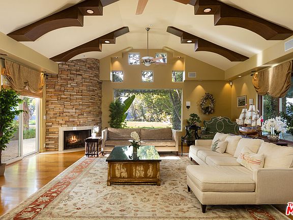 Indulge in luxury living at this Mediterranean-style estate behind the exclusive gates of Bell Canyon. This 5-bed, 5-bath haven sprawls over 4,779 sq ft on an expansive 1.43-acre lot, offering extreme privacy surrounded by nature. The entertainer's backyard is a true paradise with a pool, jacuzzi, fountain features, outdoor fireplace, built-in BBQ, and a diverse fruit tree grove. From citrus to apple, peach, apricot, avocado, pear, fig, and more, this home seamlessly blends elegance with the tranquility of its natural surroundings. Welcome to your private retreat!