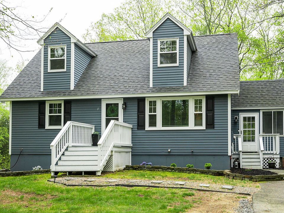 Nestled on a beautiful 2.5 acre lot with privacy all around, this lovely classic Cape is ready for you to call home! This turnkey property has everything you would want in a home. Windows, roof, septic system, and flooring are all new within the past 4-5 years. The main living space is open and has a comfortable flow from room to room making it a wonderful everyday living and entertaining space. The recently updated kitchen is bright and sunny with lots of cabinet space, quartz countertops and new black stainless-steel appliances. For those needing a first floor bedroom there is a large bonus room with a closet that could be used as well as a full first floor bath or use that bonus room as a family room with all bedrooms on the 2nd floor. There is space on both floors that could function as in home office areas. You will love the amazing level yard with a cute patio and above ground pool. Spend time on the spacious porch - a great place to relax. The unfinished basement offers the opportunity to create additional living space if desired. A quick drive to Route 101, Manchester, and the Seacoast. Whatever your needs this home fits the bill! Seller will be reviewing all offers Tues 6/3 at 8pm.