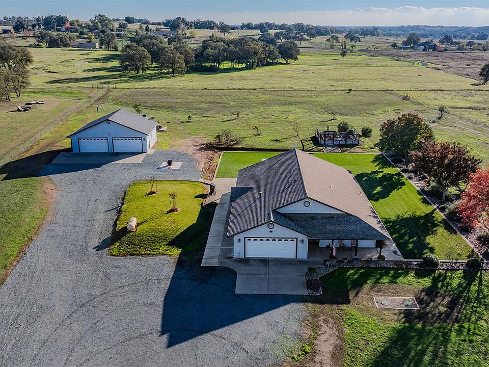 Welcome to 17 Sara-Lex, a beautifully maintained 3-bedroom, 2-bath home offering 1,893 sq. ft. of comfortable living space on five usable acres in a quiet, peaceful neighborhood. This move-in ready property blends country charm with modern convenience, offering an easy commute to both the Bay Area and the Valley. Inside, enjoy an updated kitchen with stainless steel appliances, real hardwood flooring, and a bright, open floor plan perfect for entertaining. The spacious master bedroom includes his and her closets a private and spacious on suite providing a serene place to unwind. Step outside to a covered back patio overlooking a fenced garden area, mature fruit trees, and sprawling green grass. The brand-new roof adds value and peace of mind, while the detached garage/shop provides plenty of space for projects and toys there is also plenty of parking and space for RV, and boat. Whether you're seeking tranquility, functionality, or room to grow, 17 Sarah-Lex in Valley Springs offers it all a perfect blend of comfort, beauty, and country living. Near many amenities like Lakes, golfing and dining. Look no further this home checks all the boxes.