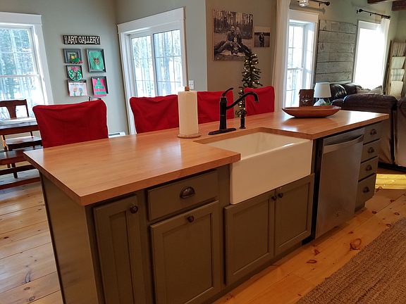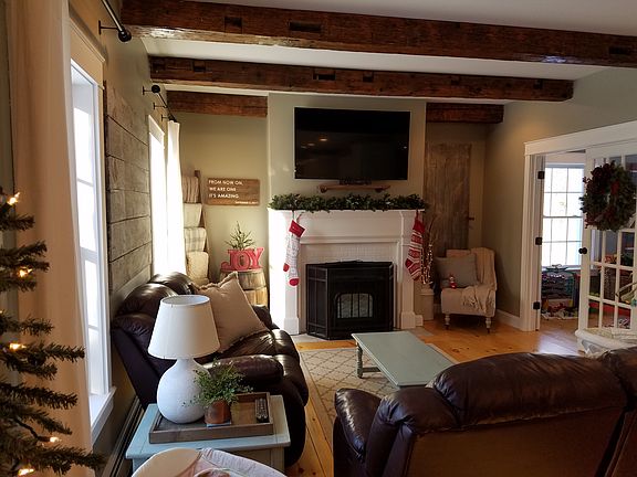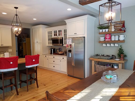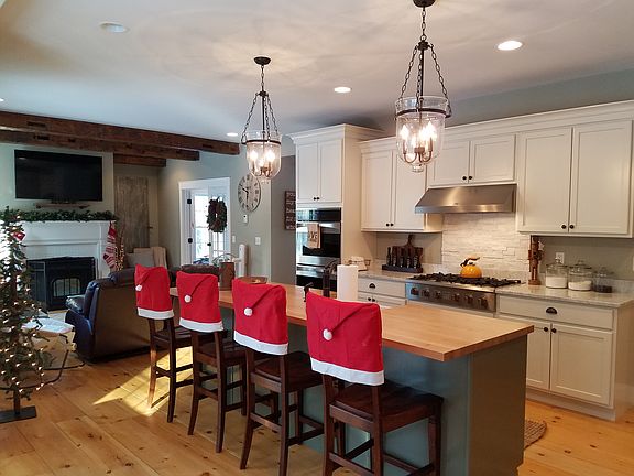 Newly built custom colonial with 9 ft ceilings with exposed beams. Elegant finishes and classic character. Pellet insert, pumpkin pine flooring, and cook's dream kitchen.