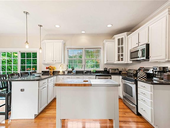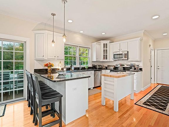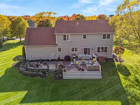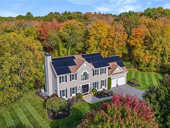 Welcome to 17 Sassafras! Set on a quiet cul-de-sac in the prestigious Kingsley Estates. This well maintained 4 bed, 4 bath colonial showcases exceptional craftsmanship and streamlined finishes throughout. Warm and inviting, a grand entrance leads into expansive living spaces where soaring ceilings and oversized windows flood the interior with natural light, highlighting the home’s volume, openness, and creates a seamless flow. Truly an entertainer's dream. The main level offers a front to back living room with built-in shelves, a wood burning fireplace. a spacious eat in kitchen w/ granite counters, stainless appliances and lovely views of the serene and tranquil backyard. A formal dining room and generous sized powder room w/ laundry complete the main level. The 2nd level offers a primary bedroom with a spa-like ensuite, a walk-in closet, 3 additional spacious bedrooms and a full bath. The finished lower level has interior/exterior access, storage galore and a half bathroom. This turnkey beauty provides gleaming hardwoods, central air, & 2 car garage w/ loft, solar power for energy efficiency, and 2 tesla batteries that serve as back-up power for the home. The outdoor space presents as a tranquil resort, offering numerous spaces for outdoor enjoyment. Boasting multi-level, low maintenance/durable decks, a fire pit and lush manicured grounds set on 4.58 acres. Tucked away, yet minutes to all amenities. Simply country living at its finest!