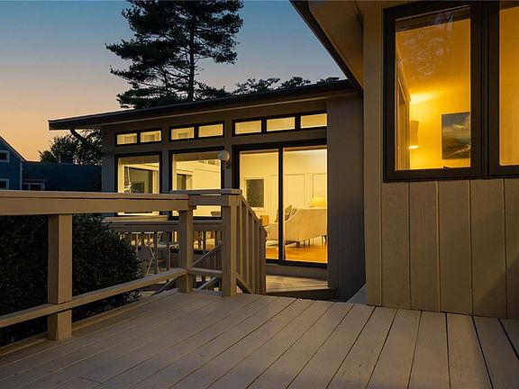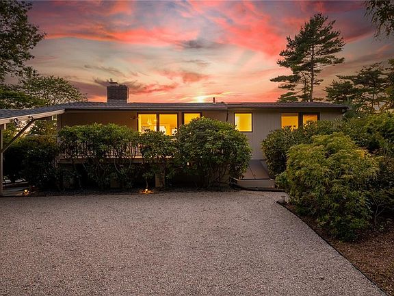 Westerly Facing Water View Contemporary - Experience sophisticated coastal living in this stunning Bristol Highlands mid-century modern contemporary where every room captures a view of nature. The interior design opens seamlessly to the living area and deck showcasing dramatic westerly sunsets and deeded access to the water. This four bedroom, three and a half bath residence has been thoughtfully and completely renovated to blend modern elegance with timeless architectural design. The new state-of-the-art kitchen features top of the line appliances, custom cabinetry, and designer finishes perfect for entertaining. New bathrooms feature beautiful floating vanities and high-end fixtures. Other recent updates include refurbished floors, new heating system, new central AC, new hot water heater and a beautiful stone driveway and outdoor shed. The open layout is designed for entertaining, with multiple living spaces, abundant natural light, and easy indoor-outdoor flow. Large windows frame sparkling water views, creating a serene and peaceful backdrop for daily life. Option to join the Bristol Highlands neighborhood association, which offers exclusive access to a private dock, beach, clubhouse, and tennis court.The East Bay bike path is just steps away- enjoy a short bike ride or walk to downtown Bristol, or travel north to Providence.