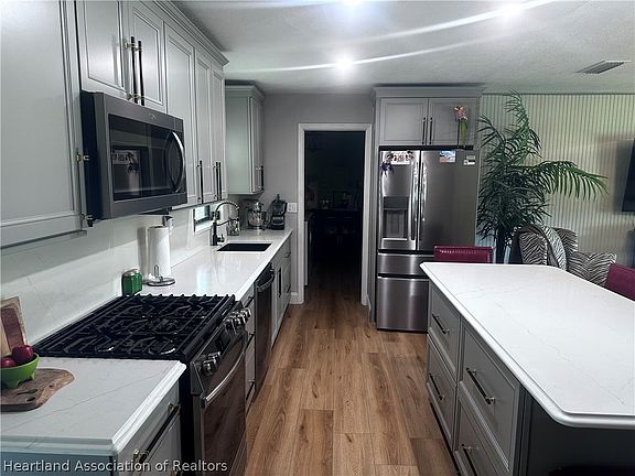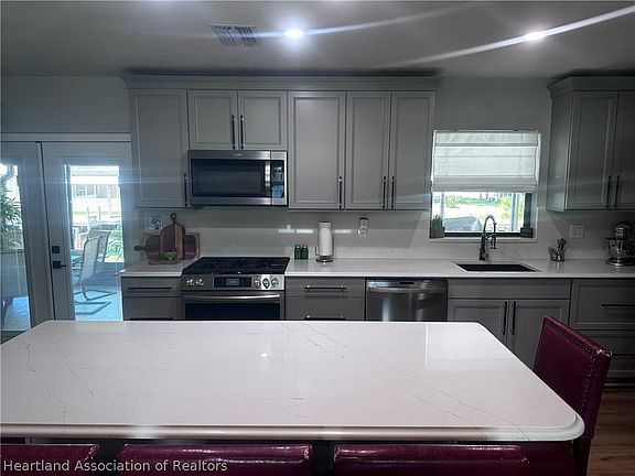 Welcome to your peaceful retreat on the serene shores of Lake Istopogka! This beautifully renovated 2-bedroom, 2-bathroom home is nestled in a tranquil area, perfect for those seeking both comfort and natural beauty. Step inside to discover luxury vinyl plank flooring that flows seamlessly throughout, leading you into a stunning kitchen adorned with new cabinets and exquisite quartz countertops. Cooking enthusiasts will delight in the convenience of a gas oven and brand-new appliances. The recent addition of a spacious bath features a large tiled shower, complemented by a new cabinet in the master bathroom and a fresh toilet installation. The generously sized guest room boasts tasteful decor and is accompanied by a beautifully updated guest bath, complete with a new vanity and charming wallpaper. For added convenience, an adjacent room off the laundry area offers flexibility as a pantry or craft room. Outside, a serene back porch overlooks the canal, providing a perfect spot to savor your morning coffee while enjoying tranquil water views. Additional features include a newer standing seam metal roof, an owned water filtration system for quality water, a newly installed grinder pump to accommodate the recent bath addition and your very own boat ramp! This home offers a unique opportunity to purchase fully furnished, including a pontoon and golf cart, ensuring you can start enjoying lake life immediately upon closing. Don't miss out on this rare gem offering the best of Florida's lakeside living with modern comforts and thoughtful updates throughout. Schedule your showing today and envision yourself calling this waterfront oasis home!