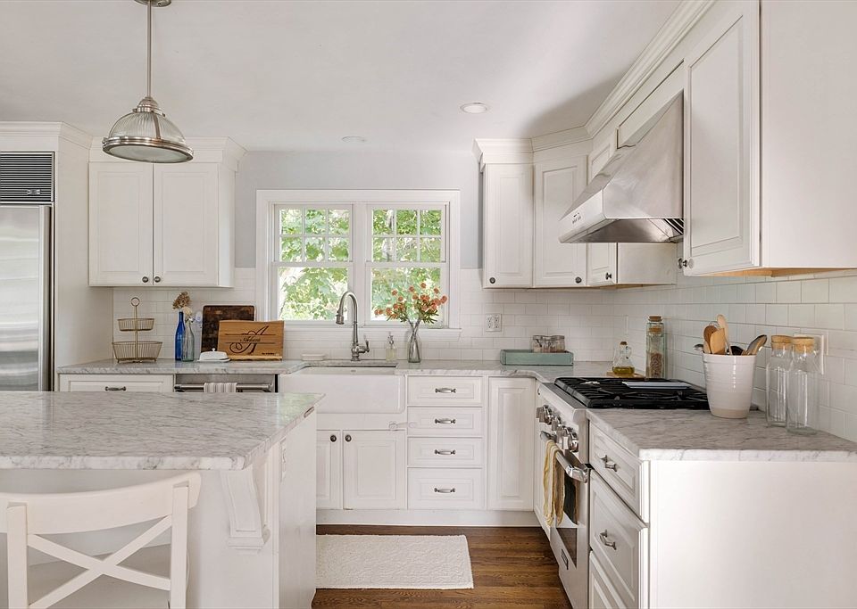 Welcome to your dream home in the serene setting of Topsfield, MA. This 4 bedroom, 2.5 bath Gambrel-style home blends comfort and elegance. Inside, hardwood floors grace the main living areas. The living room features a cozy wood-burning fireplace for relaxing evenings. The luxurious chef-style kitchen boasts an oversized island for casual dining and culinary creations. A first-floor bedroom offers flexible space for guests or a home office. Upstairs, hardwood floors enhance all three bedrooms, including a primary suite with an ensuite bathroom. The finished basement provides additional living space, ideal for a family room, play area, or home gym. Situated on a level lot of almost an acre, the property offers ample outdoor space for gardening, recreation, and entertaining. An attached 2-car garage provides space for vehicles and storage. Enjoy suburban tranquility while being close to amenities and major routes for easy commuting.