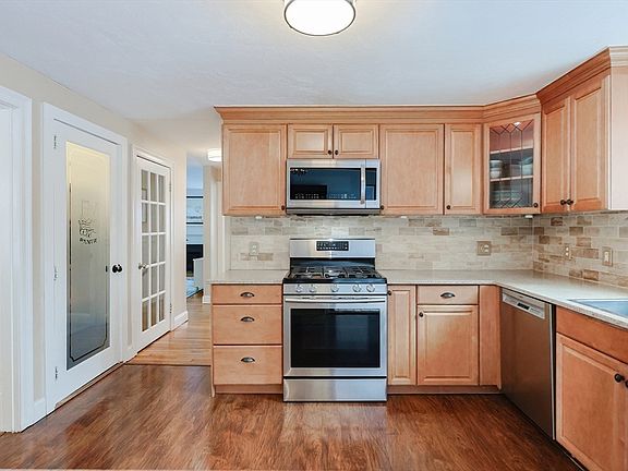 Fantastic location for this three bedroom, two bath Cape w finished basement & one car garage minutes to Holliston High School, the downtown area & the Holliston Rail Trail! Kitchen offers quartz counters and maple cabinetry, walk-in pantry, tumbled stone backsplash, stainless appliances and opens to family room with slider out to huge, flat, outdoor entertaining space with deck, fire pit area and fenced in yard. Back inside the dining room boasts hardwoods and beautiful woodwork. The lovely living room also has hardwoods, additional wainscoting & a cozy gas fireplace. One bedroom, as well as laundry, conveniently located on the first floor w two additional, spacious bedrooms upstairs, all w hardwoods and closets plus full baths on both levels. The finished lower level with bar included is perfect for entertaining or tucking in for movie nights. Rounding out this level is a bonus room currently used as bedroom but could be a great home office, gym area, etc.Offer deadline 2.17 at 5pm.