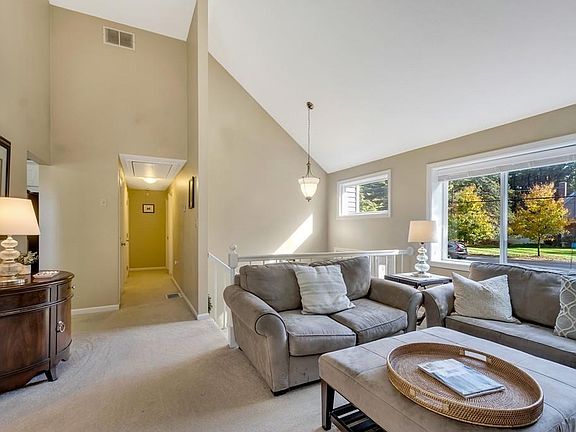 - Liv Dscrp: Flooring - Wall To Wall Carpet, Fireplace, Ceiling - Cathedral, Ceiling Fan(s)