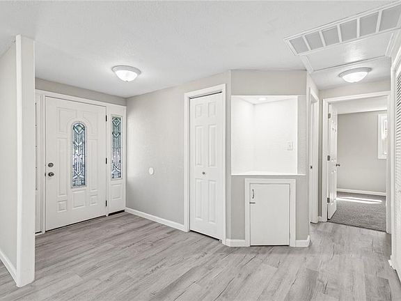 Remarkable renovations from top to bottom and most everything in between.....new roof, new flooring and carpeting and so much more. Extra specious primary bedroom with sitting area, two double closets and all new primary bath with tiled stall shower. All new kitchen- cabinets, granite countertops and stainless steel appliances. Cul-de-sac lot at the very end of the street providing a very wide lot. Central gas heat and central AC. All new LVP flooring in living areas of home with carpet in bedrooms. Very open floor plan in living/great room and kitchen. Functional 8 x 10' storage shed. Entertain regally on 20 x 12' deck. Mostly fence rear yard that also features a patio and brick bar-b-q pit. All new lighting. Replacement windows. Very flexible possession.