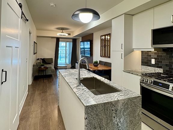 SEASONAL LEASE - 17 Spooner Crescent, Unit 108. Welcome to this beautifully appointed ground-floor condo at 17 Spooner Crescent, Unit 108 - the perfect seasonal retreat in the heart of Southern Georgian Bay. Ideally located just minutes from downtown Collingwood, Blue Mountain, and an array of four-season activities, this inviting unit offers both comfort and convenience for your getaway. Step inside to an open-concept living space filled with natural light, featuring walkout to a private patio - perfect for morning coffee or unwinding after a day on the slopes. The well-designed kitchen boasts ample counter space, making it easy to entertain or enjoy relaxed meals at home. The spacious bedrooms provide comfortable accommodations for guests or family, while the updated bathrooms ensure a clean and modern feel throughout. In-suite laundry adds exceptional convenience. With one dedicated parking space, thoughtful furnishings, and a quiet, well-maintained community setting, this property makes the ideal seasonal home base. Whether you're here for skiing, snowshoeing, hiking, dining, or simply enjoying the Collingwood lifestyle, this condo offers everything you need for a seamless stay. 4 month term, dates are flexible. Damage deposit of $1000 for the term and utility deposit of $350 per month of the term. Tenant to supply own linens/towels and pay for professional cleaning at end of lease.