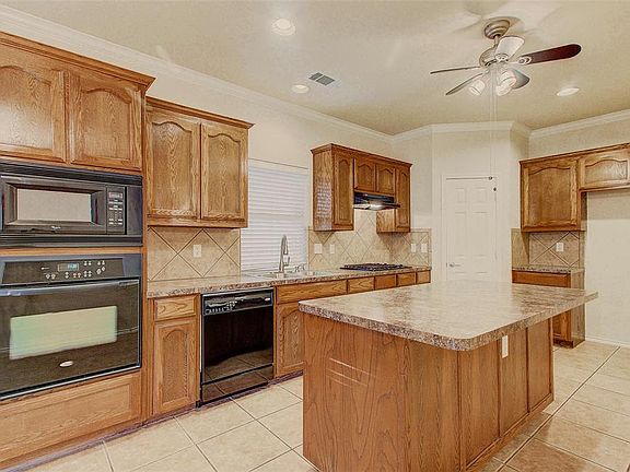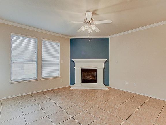 This Fort Worth one-story home offers a fireplace, a kitchen island, a den, and a two-car garage.