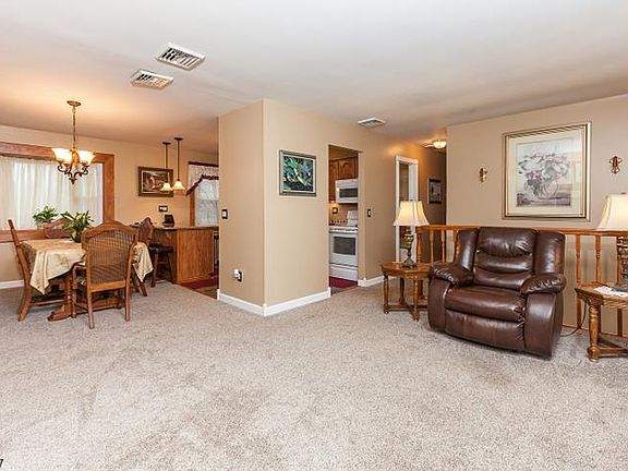 This beautifully maintained 3 bedroom, 2.1 bath ranch is ready for you to move right in and enjoy! Inviting main level offers convenient one floor living. Spacious living and dining area, kitchen with breakfast bar, updated baths and newer carpeting throughout. Finished basement has an additional full bath, bar prep space with beverage fridge. Walks out to private patio and level yard that backs to Squire Park. Public water and sewer. Close to shopping, dining and other conveniences.