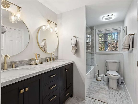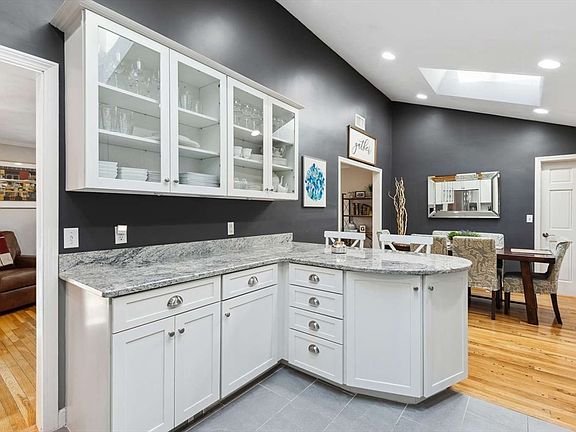Beautifully updated split-level with so many possibilities! Flexible floor plan w/living room, adjacent dining area & large modern kitchen complete w/breakfast bar, granite counters, Schrock cabinetry, SS appliances, vaulted ceiling, & skylights. Sliders from the kitchen lead to an over-sized screened porch w/trex flooring & skylights which flows nicely to a private backyard, stone patio & professionally manicured exterior marked by stone walls. Adding to the space are three generous bedrooms, including primary bedroom w/full bath. Addition completed in 2007 expands the living space, providing possibility for a second master bedroom, w/sitting room, full bath & kitchenette. The space could also be used as an in-law/au pair suite or home office with its own entrance, full basement & garage parking. Finished lower level offers cozy living room w/wood burning fireplace & possible 5th bedroom/Den. Located in a great neighborhood near Noon Hill Reservation.