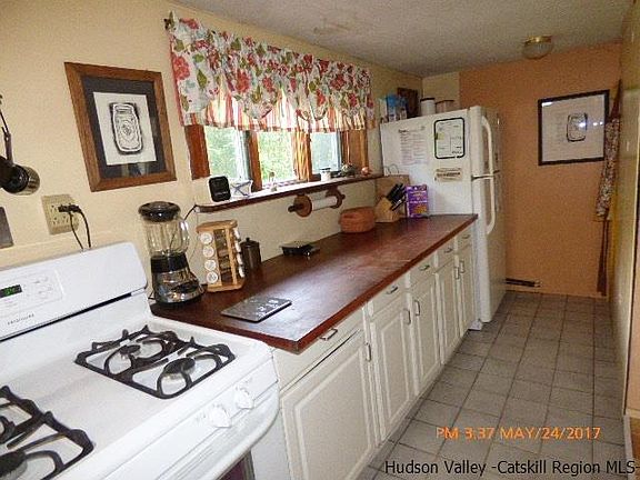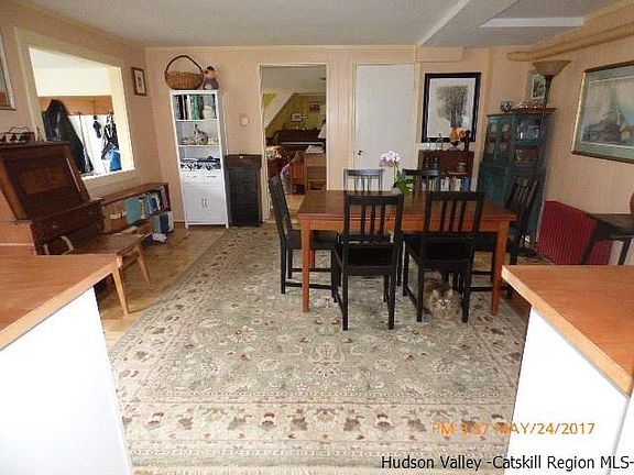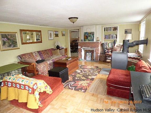 Charming country house on a large 1.5 acre corner lot. 3 Bedrooms 2 full baths, and an enclosed porch. First floor has lots of space, Galley kitchen, large dining room and oversized living room with a wood stove & fireplace. Full Bath off the Dining Room. Upstairs has a large Master Bedroom, 2 more bedrooms and a full bath. Outside boasts, lots of sunny fields for your gardens concrete patio, fruit tree and mature landscaping. There is another detached garage for your tools with potential for more parking area. Long driveway to the house adds to its privacy, the house is set back from the road. All of this and low taxes and Saugerties Schools.