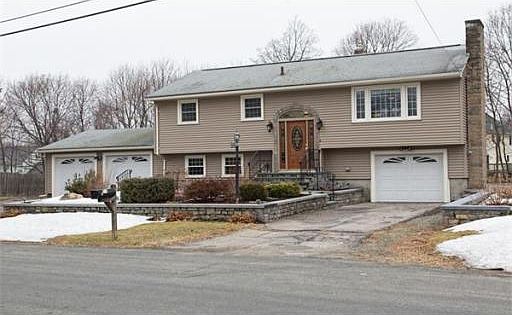 Welcome home to Stoney Brook! Lovely, updated Split Level home on a .48 acre level lot in a great neighborhood. Home comes with 3 garages-plenty of space for vehicles, storage or use one as a workshop. From the moment you walk in, you will be impressed with the conidtion and quality of the updates. Hardwood flooring throughout first floor. Living Room with Fireplace and oversized window. All windows have been replaced. Kitchen is a delight with cherry cabinets, new counters and peninsula.Atrium door leads to the spacious deck and great backyard. Dining room with closet is off the kitchen-room was originally the third bedroom and could be converted back. First floor full updated bath with granite. Downstairs you will be thrilled with the family room, full updated bath, laundry room and direct access to all garages. Great for entertaining and to watch your favorite sports events and movies.Minutes to RT213, major highways and the Loop for all your shopping, dining and theater needs. ..