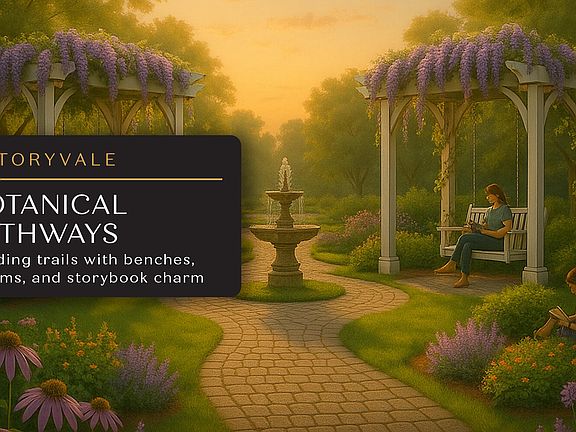 Vine-wrapped gazebosInviting parksRose-lined pathwaysFilled with natural lightTrellised walkwaysOpen flowing layoutWhimsical green spaces