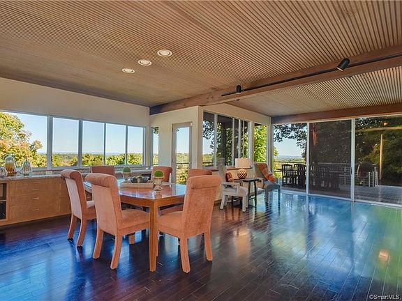 Stunning contemporary ranch designed in the style of Frank Lloyd Wright located on 2.5 acres of beautiful, secluded property with views of the Hartford Skyline. Extensive recent upgrades including a new chefs kitchen with high end appliances, new master suite and new 1/2 bath enhance the beauty and livability of this home. A lovely heated pool adds to the sense that you are on vacation when you come home to this amazing property. A full finished lower level with two good sized bedrooms, a full bath and a family room/4th bedroom make it easy to accommodate friends and family. The gorgeous acreage surrounding the property and the extensive landscaping give the house a country feel despite its convenient location. See the attached list of extensive renovations including new roof, new heating system, upgrading of the pool mechanicals. Even a complete restoration of the 1969 classic sound system. This house is really special and unique, don't miss seeing it today.