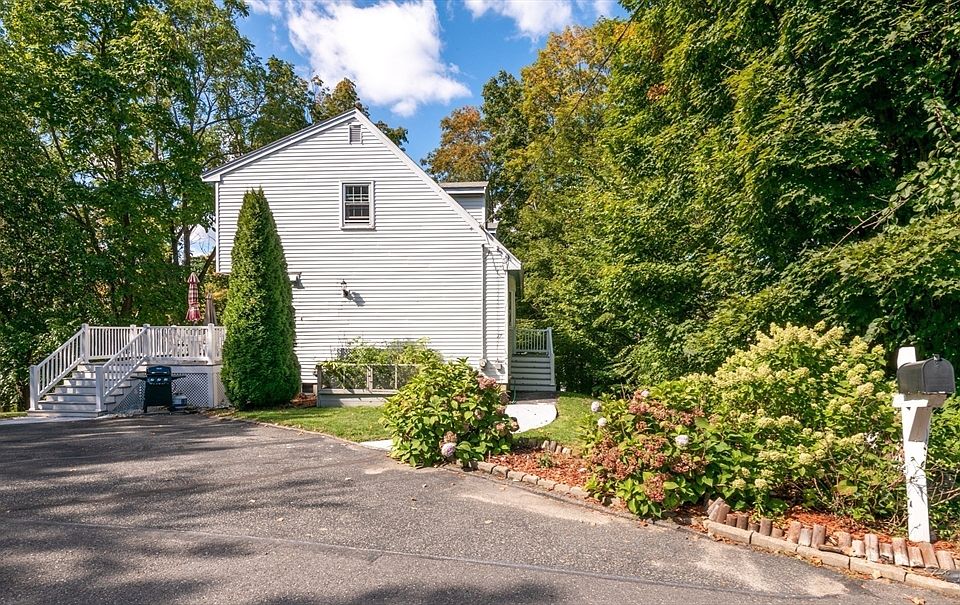 Welcome to 17 Sunnyside Road! Beautiful 4 bed 2 bath expanded Cape with 3 levels of living area, located at the end of a cul-de-sac. Tons of space inside & out of this young 1991 home. Main level includes a good-size kitchen with stainless steel appliances, ample cabinet space, & french doors that lead to a magnificent back deck! Bright dining room with a delightful bay window and recessed lighting. Living room, full bathroom, & sizeable 1st floor bedroom all included on the main level. 3 bedrooms on the 2nd floor including a tremendous primary bedroom! Full bathroom on the 2nd level as well. Pergo floors on levels 1 & 2. The home does not end there, the FINISHED WALKOUT BASEMENT is unrivaled & includes a family room/game room, along with an office & a guest bedroom. Home comes with Central AC, great storage space, & great upgrades. A peaceful lot with plenty of green space and awesome patio area. Superior location just minutes to 95 and 93, shopping, restaurants & much more!
