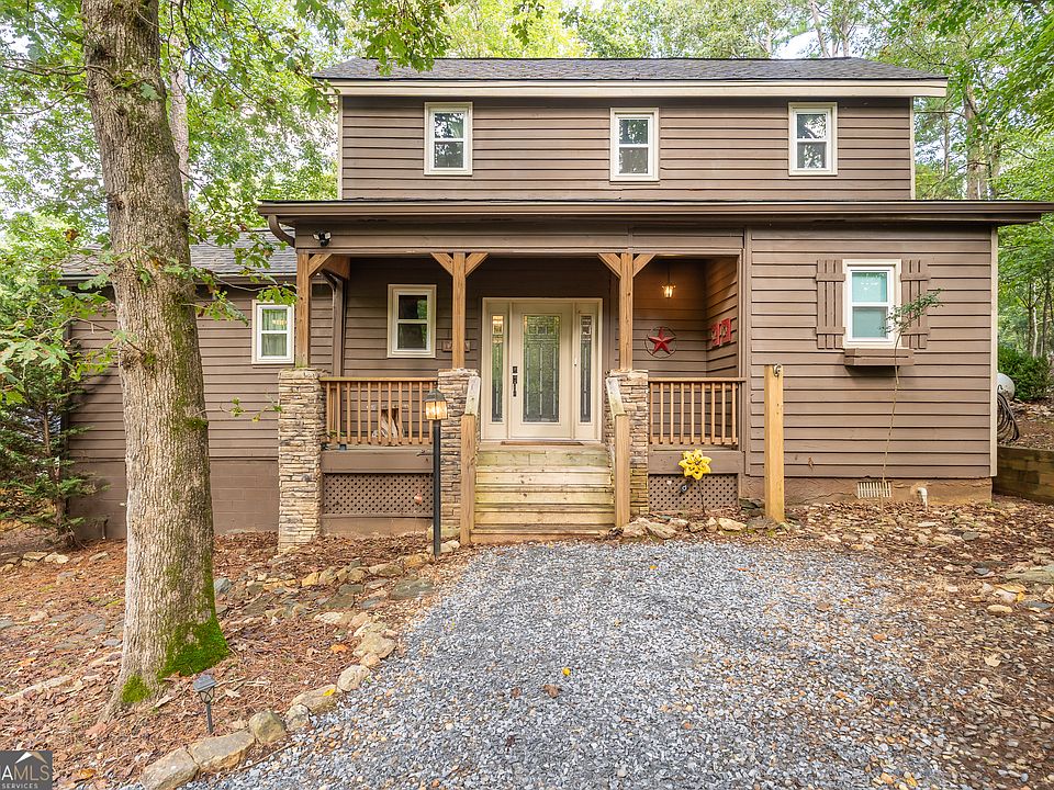 Charming Cabin with Character in a Park-Like Setting! You'll fall in love with this Fully Furnished uniquely crafted 3BR/2BA cabin nestled on a beautiful corner lot with dual driveways, located in a sought-after mountain resort community. With wood siding, architectural shingles, and a thoughtfully designed layout, this home is full of warmth and character. The main level features a cozy living room with a wood burning stove a spacious dining area and a kitchen showcasing a complementary mix of countertops and cabinetry with ample storage and workspace. You can choose to have the primary bedroom and bath on the main level or upstairs. Welcoming front porch and back deck-perfect for relaxing outdoors. Upstairs, you'll find two bedrooms, a full bath with clawfoot tub, convenient to do laundry. All appliances, including washer and dryer, are included. Upgrades include pine flooring on the main level, updated lighting and tile backsplash, dual furnace/heat pump system, New Roof, and New Windows. 1 Year Home Warranty offered with acceptable offer. Home sits on two combined lots and offers additional features like floored attic storage and a walk in crawl space. Whether you're looking for a full-time residence, vacation getaway, or Airbnb investment, this home checks all the boxes. Enjoy access to fantastic resort amenities including 3 pools, river tubing, kayaking, tennis, pickleball, community events, and more!