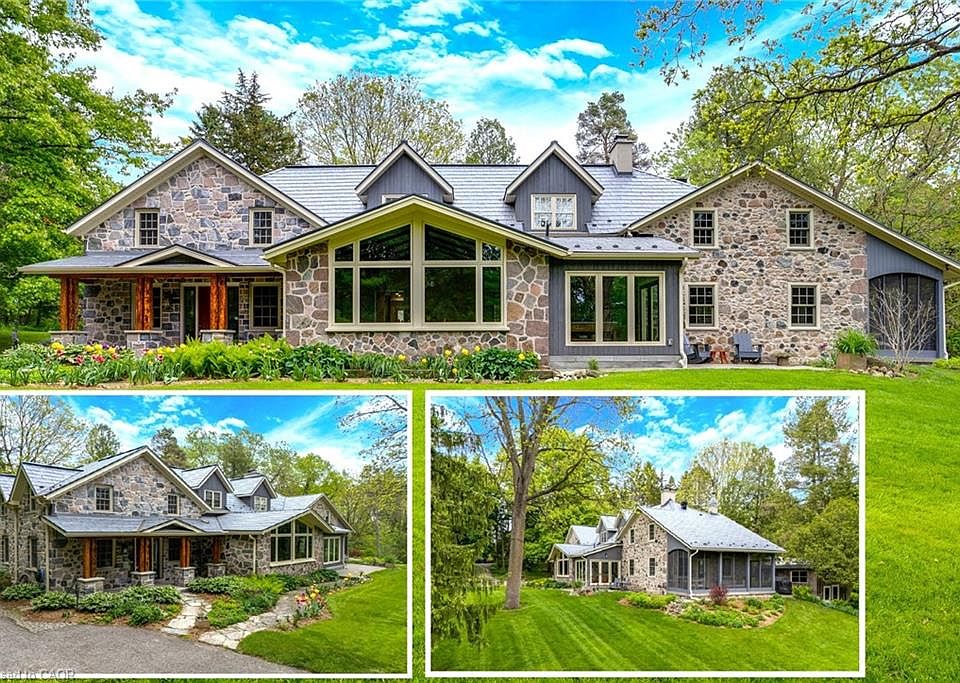 Original stone homeLush private groundsExposed stone wallsWarm wood finishesTeak-walled family roomExpansive windowsOriginal smokehouse