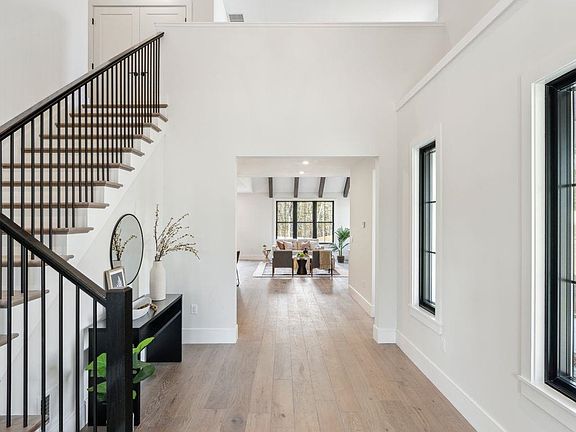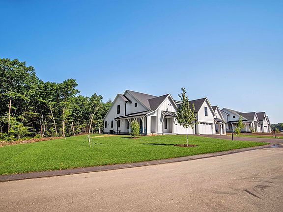 Welcome to Trails Edge located in the desirable town of Windham, New Hampshire! This stunning NEW CONSTRUCTION modern farmhouse combines contemporary elegance with classic charm. Situated in a wooded cul-de-sac, this duplex boasts a spacious layout spanning 2,755 square feet across two thoughtfully designed levels. Step inside the oversized foyer and be greeted by an abundance of natural light streaming through large black windows. The main floor features a beautifully designed kitchen complete with sleek SS appliances, ample cabinet / pantry space, quartz countertops, and an over-sized island with built-in sink & seating, perfect for culinary enthusiasts and entertaining guests. The living room invites relaxation with its cozy fireplace and stylish accents, creating a warm and inviting atmosphere. The bar features glass front cabinets, quartz countertop, & refrigeration. There is also a large dining area with sliding glass doors overlooking the private patio. The first-floor primary bedroom offers a walk-in closet & private bath featuring dual vanities, a walk-in glass enclosed shower, & soaking tub. Upstairs are two additional spacious bedrooms, a large loft, and a full bathroom, providing comfort and convenience for family and guests. Additional features include two car garage, central air conditioning, & first-floor laundry room. With easy access to major highways & nature trails, this location offers the perfect blend of convenience and serenity.