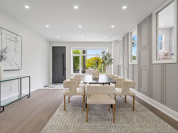 Majestic 4+1 Bedroom, 5 Bathroom Detached Home Situated on a premium 112.5 ft deep lot! This stunning property offers 2,481 sq ft above grade + 900 sq ft of finished basement space. Impressive curb appeal with stone and ACM Panelling exterior, elegant interlocking and a large covered front porch. Open-concept main floor highlighted by gorgeous engineered hardwood flooring and custom wainscoting. Spacious dining room ideal for entertaining, with seamless flow into the Family Room featuring built-in cabinetry and a gas fireplace with a sleek feature wall. Chefs kitchen boasts a sleek two-tone design, quartz countertops, matching backsplash, custom pendant lighting, a waterfall center island, high-end built-in appliances, and a full separate pantry. The living room features a gorgeous detailed accent wall and massive windows. Luxurious primary retreat offers a spa-inspired 7-pc ensuite, custom walk-in closet with organizers, and a feature wall. A secondary bedroom includes its own private 4-pc ensuite and double closet. 3rd and 4th Bedrooms share a 4pc bath and both include double closets! Convenient second-floor laundry room included. The fully finished basement features LED pot lights, a stylish full kitchen with quartz counters, stainless steel appliances, a 4-pc bathroom with custom tiling, separate laundry, and direct walk-out access. Includes 1 spacious bedrooms perfect for an in-law suite or income potential and a massive rec room can be split to create a 2nd bedroom! Fully fenced backyard with a large sun deck and a large shed! Steps to the TTC and the grand Stan Wadlow Park and Taylor Creek Trails!