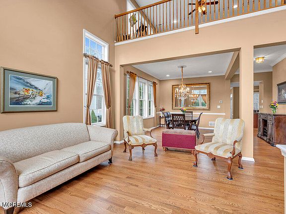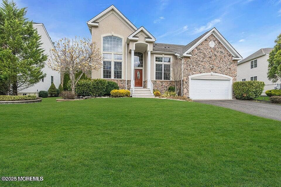 Gorgeous custom colonial nestled at the end of a quiet cul-de-sac in the prestigious The Manor at Metedeconk subdivision. Stucco and stone facade exterior as you enter this sprawling open concept home with soaring vaulted ceilings, neutral painted walls, and rich warm hardwood floors throughout 1st floor living with plenty of natural light through the large picture and transom windows. Formal living room and dining room nicely appointed with crown molding and upgraded trim leads into a very large ''open and airy'' kitchen overlooking the fireplace,vaulted ceiling great room. 2nd floor loft with plenty of recessed lights to set the mood just right. Gourmet kitchen complete with center island and stainless appliance package Highly sought after first floor master bedroom suite with large soaking tub Downstairs and adjacent bedroom full bath the fully finished basement is perfect for entertaining complete with a custom full wet bar;ideal for gatherings, movie nights, or hosting friends. Includes full bathroom in lower level and gym / arts and craft room. 2nd floor additional bedroom and bath opens to a loft entertainment room overlooking kitchen, great room and living room below. Conveniently located just minutes from Route 195, this home is a perfect choice for commuters while still offering the peace and privacy of suburban living. With a 2-car garage, manicured landscaping, and thoughtful details throughout, this home blends comfort, style, and location in one incredible package.