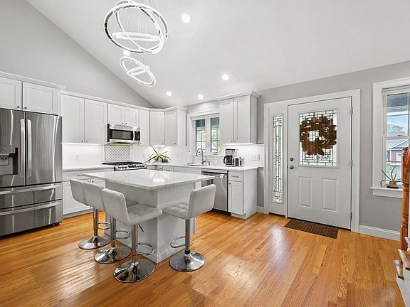 Beautiful like-new townhouse built in 2022 that offers one-level living if desired! Enter into the bright kitchen featuring white shaker cabinetry, Brazilian Quartz counters, tile backsplash, stainless steel appliances & large island perfect for entertaining. Enjoy cathedral ceilings in the kitchen & living room, and hardwood flooring throughout the home. The open floorplan offers a flexible dining area which opens into the living room offering a gas fireplace and sliders leading to the patio area. The large primary bedroom with walk-in closet & attached bathroom round out the first floor. Upstairs features a spacious loft area, 2nd bedroom and another full bathroom. Additional features include remote control shades throughout, first floor laundry, recessed lighting & custom light fixtures, central air, 2 car garage, and a full unfinished basement. Great commuting spot near 190. Time to enjoy condo life!