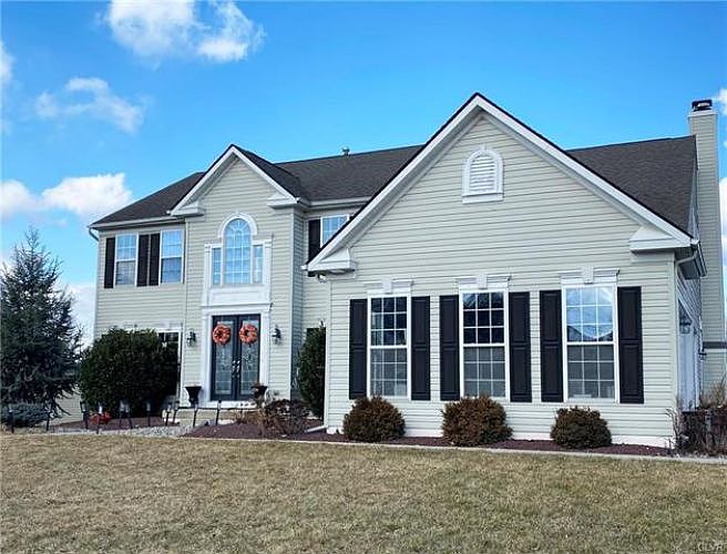 Wow! If you like to entertain, this is the home for you!! Magnificent contemporary colonial with stunning views. Two-story entry foyer complete with hardwood flooring that extends throughout the first level. Open floor plan is enhanced with stately solarium with double doors that open to the covered deck that extends to open deck with amazing views. Family room, living room, dining room and a gourmet kitchen with over-sized center island complete with white cabinetry on first level. Family room has gas fireplace, and large windows. Home office has double doors leading to foyer.Large open stairway leads to second level. Second level has over-sized master suite with upgraded master bath, three other bedrooms and a well-appointed full bath. The full finished basement offers 2 extra bedrooms, exercise area, family room, full bath. Other features include a three-car side entrance garage, economical gas heat and a custom fire pit. Comes with Home Protection Plan.