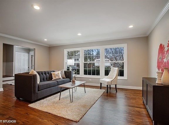 Rarely available true 5 bedroom on quite street in Ivy Hill neighborhood. Complete remodel! Large bright living/dining room w/can lighting, new hardwood, trim and crown. Kitchen remodel includes custom wood cabinets, upgraded stainless steel appliances, quartz countertops, upgraded lighting and eat-in space. Spacious family room w/new carpet & high ceilings. All bedrooms are generous size on second level w/new hardwood flooring and trim paneled doors. Finished basement with new flooring, can lighting and trim. Updated bathrooms, large master suite with walk-in and private bathroom. Huge deck recently refinished. Dual pane windows throughout. New Furnace, new electrical panel, well maintained throughout. Award winning schools Ivy Hill/Thomas/Buffalo Grove. Close to everything including downtown Arlington Heights. Will not be disappointed! Priced to sell.