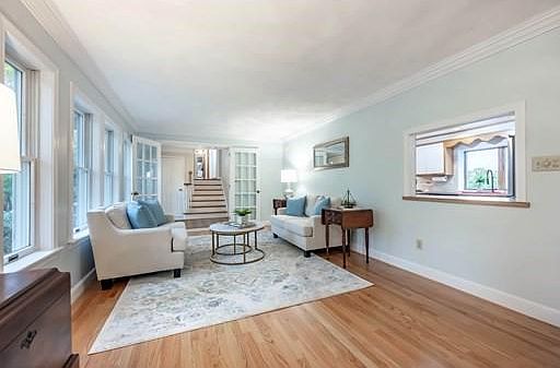 Expansive custom built Cape Cod style home in a pastoral setting adjacent to Bancroft Elementary School. This sundrenched home invites gatherings with its eat-in kitchen with lg bow window & adjacent living and dining rooms, both with new hardwood flooring. The convenient 1st floor primary suite has an attached sitting room with fireplace and bow window that is also conducive to using as a den/home office, and includes private rear patio access through 4 glass sliders to enjoy a coffee break while overlooking the pretty 2 acre private backyard. Upstairs you'll find 2 add'l sizable bedrooms, as well as an oversized family room with 5 panel window overlooking the backyard & pebble tec gunite heated pool & a private home office. The spiral staircase in the family room leads to the cupola overlooking backyard with southern exposure. Easy access to downtown Andover shops and restaurants, Pike School, Phillips Academy & commuter routes provide an ideal location to this special Andover home.