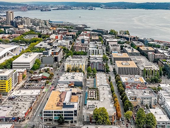 Experience modern luxury in this large top-floor unit, filled with natural light from floor-to-ceiling windows and skylight. Enjoy your private balcony with views, & just steps from the rooftop deck. Spacious kitchen with dining and breakfast bar seating. Bamboo flooring, granite countertops, gas range, and fireplace. Primary bath has double sinks & large walk-in closet. Plenty of storage! The den is flexible as a guest room or home office. Secure indoor-access building with covered garage parking. In the heart of Queen Anne, with easy access to freeways, grocery, and more. Well-connected to public transit. Close to Sculpture Park, waterfront walk to Pike Place or ballpark, and just blocks from Seattle Center and Space Needle! No rental cap
