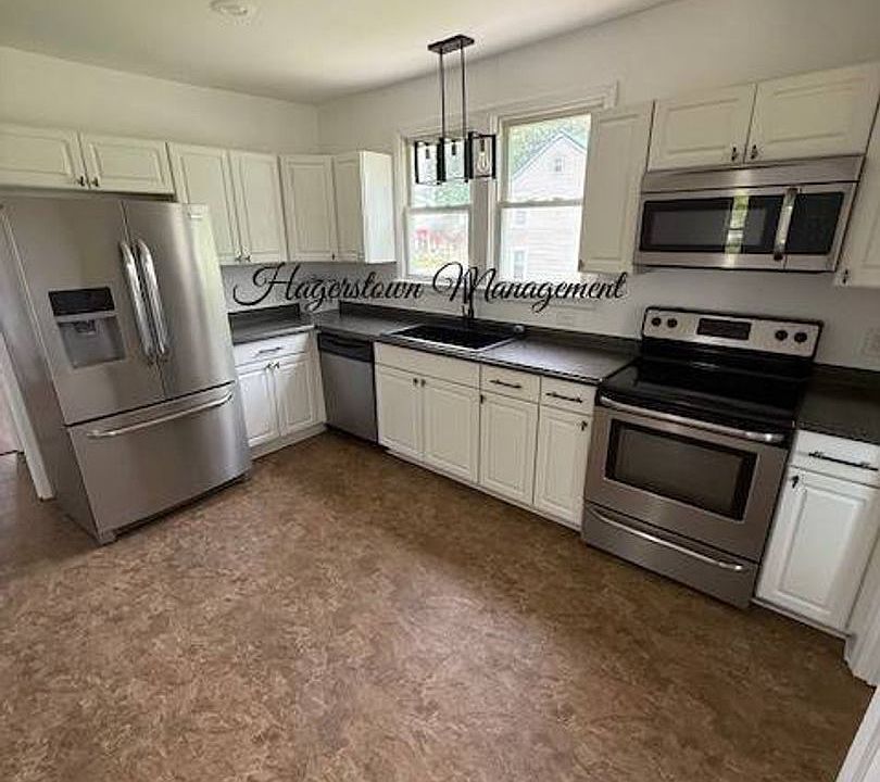 Welcome to this charming 3-bedroom, 1.5-bathroom home in Hagerstown, MD. This newly renovated house features hardwood floors, a new kitchen with all stainless-steel appliances, and newly updated bathrooms. Main level has a spacious dining room off kitchen and large family room with lots of natural light. Upper level with master bedroom with walk-in closet, bedrooms 2 & 3 are a great size & share a beautiful remodeled full bathroom. Enjoy the convenience of off-street parking, a driveway, and a detached garage for extra storage. Stay comfortable year-round with central air conditioning and electric heat. Relax on the front or rear covered porches or in the spacious yard. Located close to both major interstates, shopping, and restaurants.