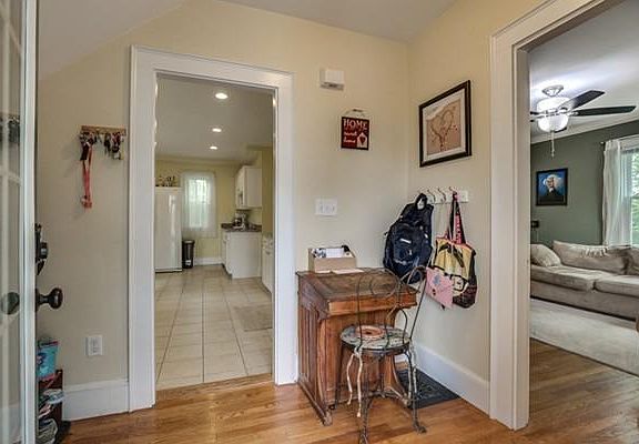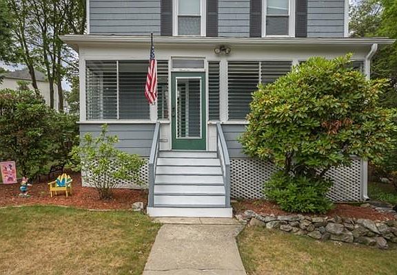 Updated New England style colonial. Rebuilt front steps lead into freshly painted enclosed front porch. New decorative front door opens into a center hallway, new oak tread stairs leading to the second floor. Located off the front hall is the living room with hardwood floors, crown molding and ceiling fan. Dining room, built in hutch, hardwood floors, crown molding, wainscoting and ceiling fan. Updated bright and sunny eat in kitchen, granite counters and recessed lights. Off the kitchen is a new laundry room and bath. Updated vanity, light, mirror, tiled shower and floor. Second floor has three bedrooms, hard wood floors and ceiling fans. Family bath with updated vanity, light and resurfaced deep porcelain tub. Carpeted, walk out basement, 2 full windows offers additional storage. Updates include; 2016 new interior second floor oak tread stairs. 2015 exterior doors and gutters. 2014 Pella windows. 2012 architectural shingle roof, blown insulation and water heater.