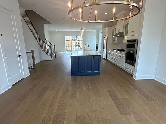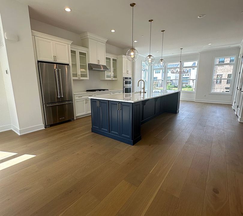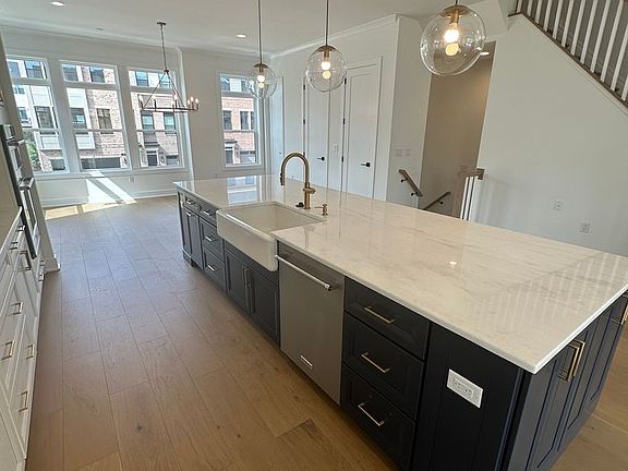 -Elegant marble countertops and sleek wood flooring throughout