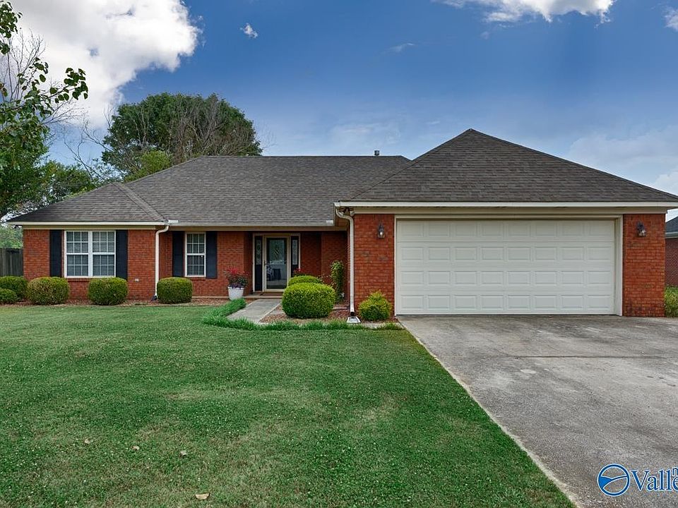 17 Walter Lane is a 3 bedroom, 2 full bath single story home zoned for the highly desirable Priceville School System. Inside you have a spacious living room that opens up to the dining area and your kitchen. You have an isolated master bedroom and the other two bedrooms are a great size as well, sharing the secondary bathroom. The home has durable LVP flooring throughout and fresh paint in most areas. Your backyard has a large covered patio and is fully privacy fenced. The attached 2-car garage offers plenty of space and storage and is heated and cooled as well, with a side entry door.
