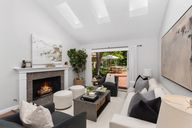 Multiple fruit treesStriking rock waterfallPeaceful retreatQuiet cul-de-sacSpace for an aduWalls of windowsRemodeled spa-inspired bathroom