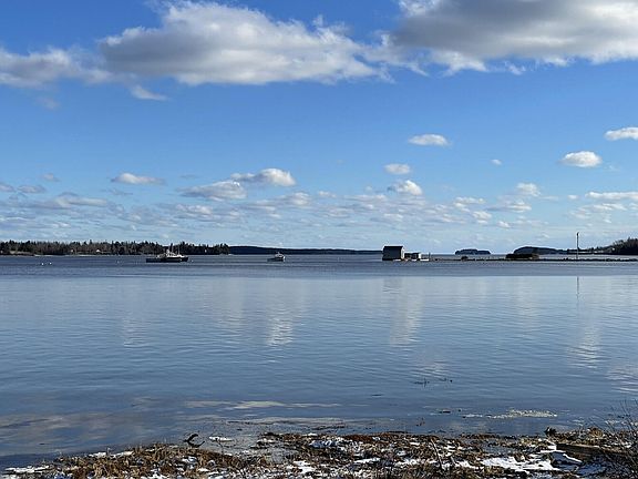 This beautiful move-in ready waterfront cape offers elevated views of Bay and open ocean with 290 feet on Narraguagus Bay. 1.5 acres of land, great views of working waterfront, excellent opportunity for commercial enterprise. Two bedrooms, full bath upstairs and half downstairs, large open living room with attached enclosed sun porch with views, large eat-in kitchen with plenty of cupboards and stone hearth for woodstove. Two large bedrooms upstairs, master has a balcony overlooking bay/ocean. Hardwood floors throughout, full basement, hot water baseboard heat along with radiant first floor heat and additional heat pumps. Home also offers EV charging. Walk to town for all amenities.