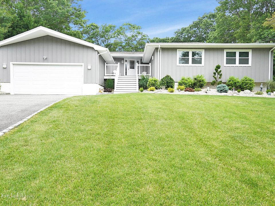 Completely updated inside and out. Oversized ranch with four bedrooms, three bathrooms, living room, dining room, large kitchen, den, full basement, and a two-car garage. Outdoor living area oasis with in-ground pool, lush landscaping, brand new Azek decking, eating area with protective slide out awning. Very close to East Landing Beach.