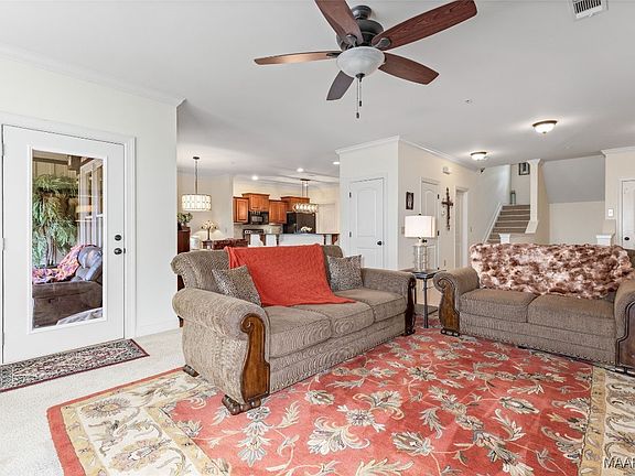 Enjoy a relaxed, maintenance-free lifestyle in this elegant 3-story condo, perfectly situated in a quiet, gated community just minutes from downtown Wetumpka. With an elevator to every level, spacious living areas, and peaceful outdoor spaces, this home offers both comfort and ease. The main living floor features an open design with a beautiful kitchen boasting granite countertops, black appliances, and bar seating for up to six—perfect for casual gatherings. A hidden desk nook with storage adds practicality without clutter. Upstairs, the private primary suite and guest room each open to their own balcony, offering quiet spots to unwind. Spend your days your way—walk the scenic community trails, relax by the pool, or visit with neighbors at the clubhouse and fitness center. With exterior maintenance handled for you and HOA coverage of $500/month, you can focus on enjoying life, not chores.
