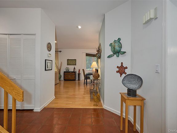 Charming and stylish two-level townhome located in The Woodlands at Tuxedo. A community Clubhouse, Pool Tennis/pickleball courts offering Country Club living at its best. Welcoming entry foyer, formal living room, wood burning fireplace, access to oversize backyard with paver patio overlooking the bordering river. Open formal dining room with alcove, large windows for additional view of yard. Well appointment updated kitchen efficient in layout and cozy eat-in dining. Open casual family room for relaxing, reading or watching favorite movie or sports team. Convenient laundry area and handicap accommodation full bath complete first floor. Attractive wide wood staircase with gentle landing brings you to second level entry area featuring large primary bedroom, alcove with walled with windows for view, built-in bookcases, ample closets and luxurious en-suite primary bath, jacuzzi tub, shower and twin vanities. Second bedroom with built in bookcases, generous closet also en-suite full bath with tub/shower. Accessible Partial attic for storage and a deep two car for additional storage and workspace needs. Surrounded by the forever protected and vast Sterling Forest parkland the Woodlands offers unparallel tranquility yet 10 min to Rockland/Bergen borders, 5 min. to NYS Thruway and 45 min. to Mid-Town Manhattan. Your dream awaits, plan a visit.