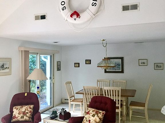 One Floor Living! Bright Country House End Unit Ranch Condo in popular Woodrise Complex. 2BRs. 2Bths. Open LR/DR w/ Cathedral ceiling, Fireplace, and Double Sliders to Patio. Oak cabinet Kitchen w/ adjoining Dining Area and Laundry. Master Bedroom suite w/ Walk-in closet, Private bath, and Sliders to patio. Gas Heat & A/C. Nicely kept and ready to occupy. Carport Garage w/ Storage. Walk to Association Clubhouse w/ Pool and Shining Sea Bike Path. Convenient In-Town location near Shopping & Beaches.Association Improvement Project: Building Envelope Construction, Landscaping, and Drainage. well underway and almost completed. Related Assessment will be in effect as of 1/1/20