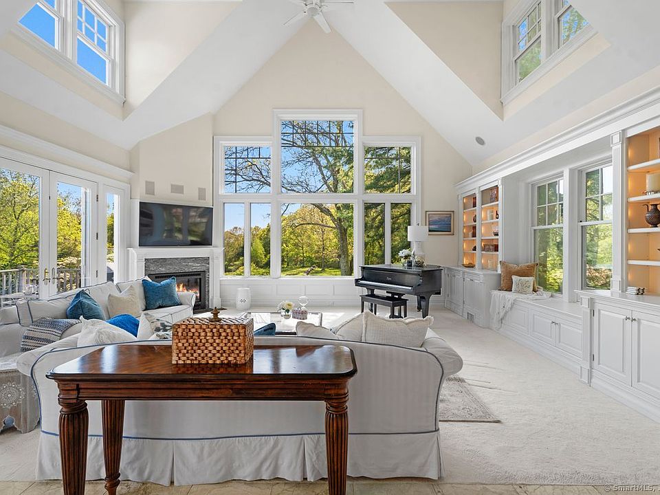 Enjoy spectacular sunrises and sunsets from your Great Room on "Tiffany Hill". A 14 Acre estate with swimming pool, pool house and around the corner from Hamburg Cove and access to the Connecticut River. High ceilings, classic custom millwork and elegant high-end finishes allow this home to stand apart from most. Stone walls, pastoral views and vibrant perennials provide an ever-changing palette of colors through Spring, Summer and Fall. The soaring ceiling and large windows in great room bring the outside in. Watch the migration of Canadian geese and other birds at eye level. The kitchen with a huge pantry (with cozy desk area) overlooks the pool and perennial gardens. 3 ensuite bedrooms, one of which has a Mahogany floored screened in porch and built ins. The first floor primary bedroom suite includes stone fireplace, his & hers walk in closets, French doors to its own bluestone patio and enjoys radiant in-floor heat to stave off those chilly mornings. The downstairs family room is big enough for a pool table and is currently used as an office. It includes Dark wood paneling, a wet bar with full size refrigerator, granite countertop and copper sink. Many more details are too numerous to mention. Equidistant to NYC and Boston and 5 minutes to the shore makes this home an ideal year-round primary residence or a phenomenal get away. Come see it, fall in love, Make an Offer! Completely rebuilt and re-imagined in 2005. Full house automatic Generator, 1 stall horse barn and paddock, pool house, organic vegetable garden.