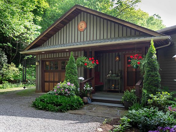 Sarvisberry is a remarkable 30-acre estate in the scenic mountains of Floyd, Virginia, just off the Blue Ridge Parkway and adjacent to the renowned 5-star Primland Resort. At over 3,250 feet in elevation, it enjoys a unique micro-climate that supports diverse flora and fauna, evoking the feel of an English garden. The main residence is a 4,792-square-foot custom-built home with 4 bedrooms and 4 baths. Designed with passive solar features, it offers a walk-out basement opening to the pond and backyard, extensive decks and patios with stunning views, and a hot tub. Custom woodwork and exposed beams add charm throughout. A 3,150-square-foot studio and gallery with a 2-bedroom apartment provide versatile, eco-friendly space, while a 570-square-foot guest cottage offers an additional bedroom and bath. A private pond with a white sand beach enhances the property’s recreational appeal. Combining seclusion and convenience, Sarvisberry is minutes from the town of Floyd and offers a rare blend of natural beauty, luxurious living, and versatile spaces for both private enjoyment and gatherings.