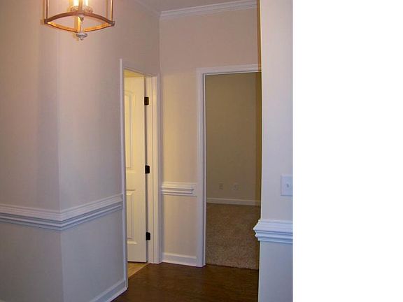 -The 2468 Caviness Land Floor Plan is a 4 Bed/3.0 Bath 1.5 Story home w/Vinyl Siding w/Shake/Stone accents. Great Room w/Gas Log FP, Ceiling Fan & pre-wired for Surround Sound. Kitchen w/Wood Cabinets w/Knobs & Pulls, Granite Countertops w/Tile Back Splash, Stainless Steel Appliances, Island w/Breakfast Bar, Kitchen/Dining Room Combination & Pantry. Hardwood Floors in Foyer, Kitchen & Dining Area. Carpet & Padding in Bedrooms & Vinyl in Baths & Laundry Room. Master Suite on Main Floor w/Tray Ceiling, Ceiling Fan, Double Sinks, Garden Tub, Separate Shower & Walk-in Closet. Guest Bedrooms pre-wired for ceiling fans. Satin Nickel plumbing fixtures & hardware throughout. Two-Car finished/painted Garage w/insulated garage door w/glass inserts, garage door opener & two remotes. Front and back Gutters. Security System w/one Motion Detector, two Key Pads & Door Sensors.Sodded grass in front & side yards with back yard seeded/straw & attractive shrubbery