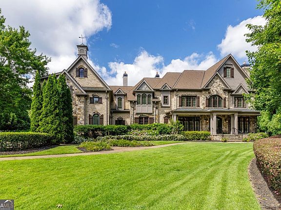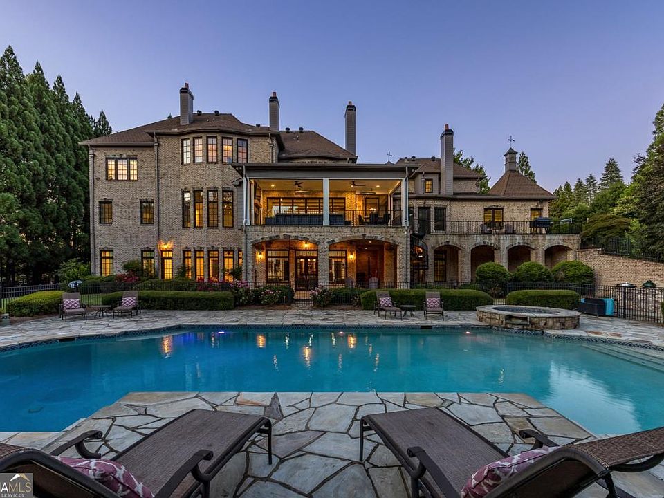 An extraordinary renovation in Johns Creek. Tucked away on a beautifully landscaped, 2.75-acre private lot, this spectacular estate has been completely reimagined by Barbara Dawes Designs, blending timeless architecture with bold, bespoke finishes and curated luxury at every turn. A grand two-story foyer welcomes you with a sweeping curved staircase adorned with iron railing, setting the tone for the artistry within. The formal dining room is anchored by a one-of-a-kind Alex Turco art installation titled "The World is Yours," creating a conversation-starting centerpiece. The fireside family room offers architectural elegance with a coffered ceiling and a striking custom black leather marble mantel. A floating staircase adds to the home's contemporary sophistication. Designed for chefs and entertainers alike, the kitchen is exceptional-featuring a custom pizza oven with artisan tile surround, a large island with quartzite countertops and farmhouse sink, and illuminated glass-front cabinetry showcasing your finest glassware. The culinary experience is elevated by top-tier appliances: a Wolf six-eye range with griddle and retractable Alex Turco backsplash, built-in SubZero refrigerator with dual freezer drawers, SubZero wine refrigerator, and Cove dishwasher. The adjacent scullery kitchen is equally outfitted with a True full-size refrigerator and freezer, Wolf cooktop with wok accessory, Wolf steam oven and warming drawer, Miele coffee system, Sharp microwave, second Cove dishwasher, craft paper dispenser, and custom walk-in pantry. Casual dining flows into a fireside breakfast area and into the keeping room, where NanaWall aluminum folding doors open to an exquisite three-season porch. This seamless indoor-outdoor connection features Bluestone flooring, fireplace, two Bromic outdoor heaters, and fully motorized vinyl shades and screens-creating the perfect year-round gathering space. Thoughtfully designed for everyday living, the main floor also includes a richly appointed library with built-in cabinetry and coffered ceiling, a fully custom mudroom with lockers, bench storage, and built-in planning desk. A dedicated dog room includes raised bathing area, pot filler, and built-in bowls. A spacious laundry room offers two sets of washers and dryers, floating shelves, custom cabinetry, and a farmhouse sink. A serene guest suite on the main level offers a luxurious retreat with Venetian plaster walls, a morning bar with beverage refrigerator, gas fireplace, and a spa-like bath clad in imported Carrara marble. The oversized open shower features dual rain heads and a soaking tub, complemented by a floating double vanity. Upstairs, the fireside primary suite is a true sanctuary with a private sitting area, morning bar, and lavish bath including heated floors, steam shower, soaking tub, dual vanities, two private water closets, and a vast custom closet. A flexible bonus room makes an ideal nursery, studio, or dressing space. Four additional en suite bedrooms are generously sized, each with custom finishes and elegant bathrooms. The finished terrace level extends the home's luxury with a fireside media and lounge area, full bar, game room, exercise room, guest powder room, and spa bath with sauna, steam shower, and pool access. A secondary laundry room makes entertaining poolside effortless. Outdoors, enjoy resort-style living with a custom pool and spa, surrounded by a fully equipped outdoor kitchen including a built-in Evo gas grill, Eco flat-top griddle, Green Egg, and beverage cooler. A large, level grassy yard offers ample space for play, gardening, or entertaining. Every detail has been carefully considered-from brand-new 5/8" wire-brushed engineered hardwood flooring and wood beams to seven fireplaces and unparalleled finishes throughout. A rare offering blending craftsmanship, comfort, and designer flair in one of the most desirable and private settings.